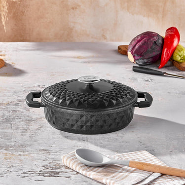 Taç Bella Induction Die Cast Lid Shallow Pot 26 cm Black